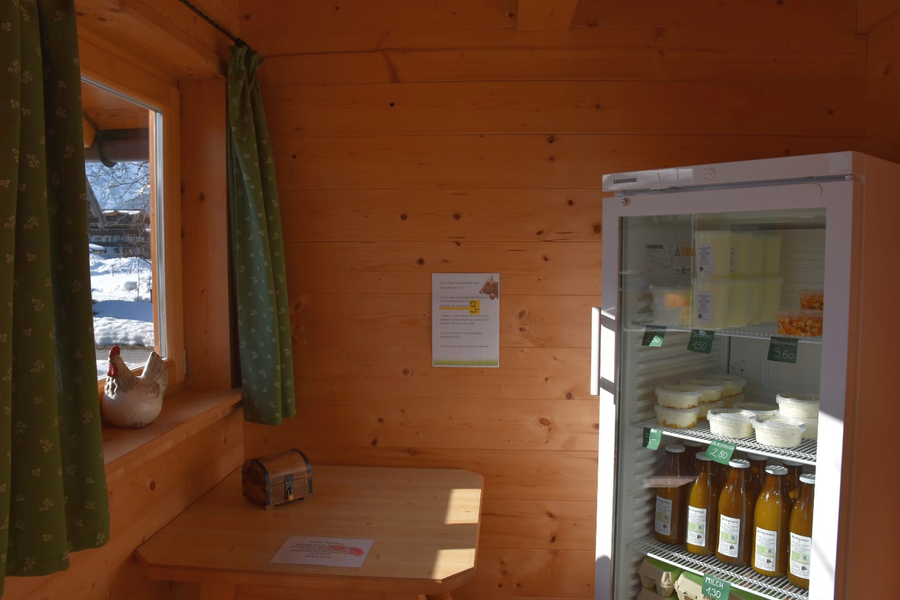 Unser Selbstbedieungsladen im Ortszentrum von Waidring ist für unsere Kunden rund um die Uhr geöffnet. Unsere frischen Produkte werden laufend aufgefüllt und für euch bereit gestellt. Somit kann es auch vorkommen, dass Waren erst am nächsten Tag oder nur saisonal bedingt verfügbar sind.